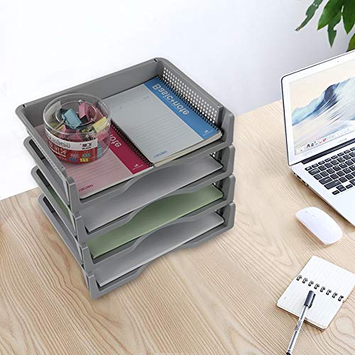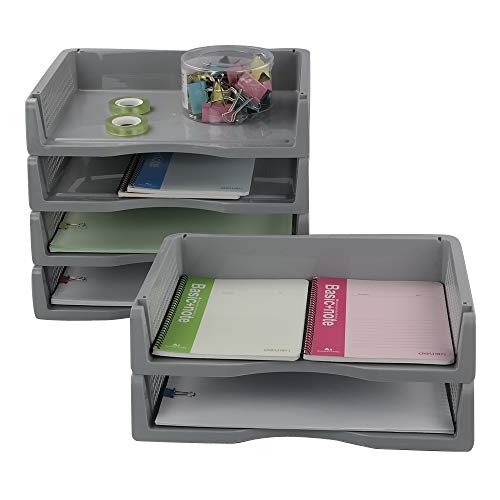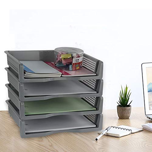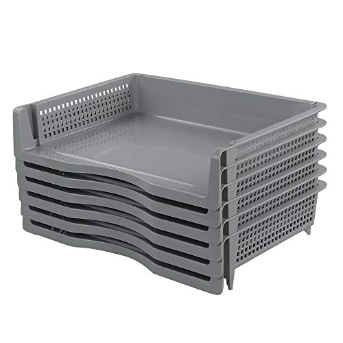 Tstorage Vassoio Supporto Portadocumenti Impilabile in Plastica, Formato A4, Colore Grigio, Confezione da 6