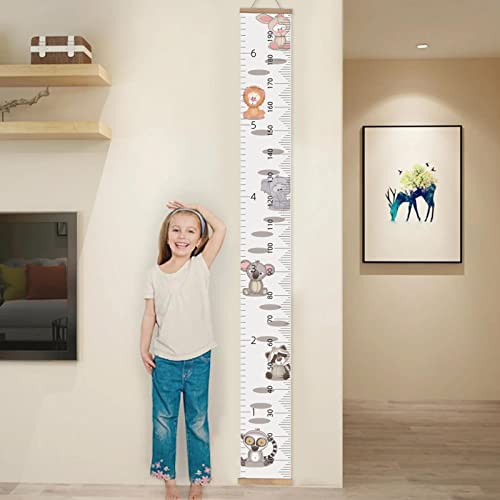 Tsuchiya Tabella di crescita per bambini, altimetro in tessuto e tela - Altimetro con telaio in legno, metro rimovibile in tela per pareti interne, dormitorio