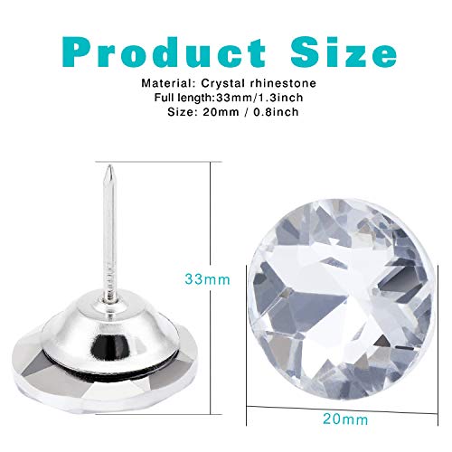 TsunNee - Chiodi decorativi da tappezziere, con testa di cristallo, per divano letto, testiera, parete, mobili fai da te, 60 pezzi da 20 mm