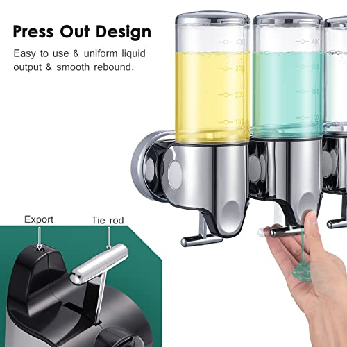 pompe triple e grande capacità: utilizzare sempre un contenitore per sapone liquido per ridurre la spazzatura ambientale. Dispenser di sapone a tripla pompa, elimina il disordine della bottiglia da doccia con questo comodo dispenser. Ogni camera è da 500 ml. 1500 ml risparmieranno tempo prezioso e frequenza di ricarica e ti permetteranno di acquistare i tuoi liquidi preferiti alla rinfusa per ridurre i costi.