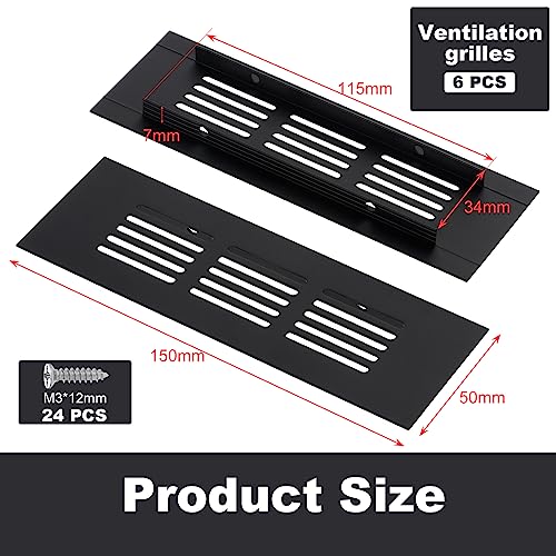 TsunNee 6 griglie di ventilazione per griglia di sfiato dell'aria, 150 x 50 mm in lega di alluminio, griglie di ventilazione interne per armadio armadio, armadio, nero