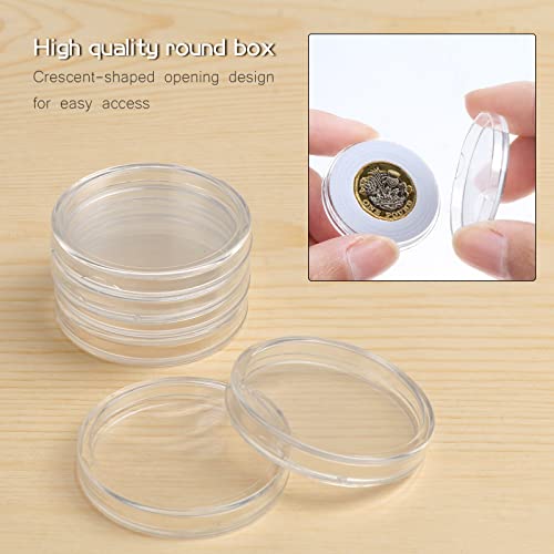 Capsule per monete di qualità: il contenitore per monete resistente è realizzato in materiale plastico ad alta trasparenza e ispessimento, design ad angolo arrotondato, angoli lisci e sensazione confortevole. Il design a mezzaluna, rende questi porta monete comodi da aprire. Antipolvere e resistenza all'ossidazione, può contenere monete non più grandi di 30 mm, monete commemorative.