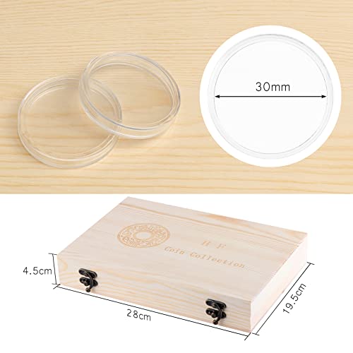 Scatola per raccolta monete in legno di pino di alta qualità: realizzata in legno di pino di alta qualità. Le dimensioni della scatola di raccolta delle monete 28 x 19,5 x 4,5 cm possono contenere 100 capsule di plastica per eliminare le capsule di monete facilitano lo stoccaggio, la visualizzazione e lo scambio. Pratico e di lunga durata, ideale per proteggere le capsule del portamonete, tenerle ordinate e organizzate.