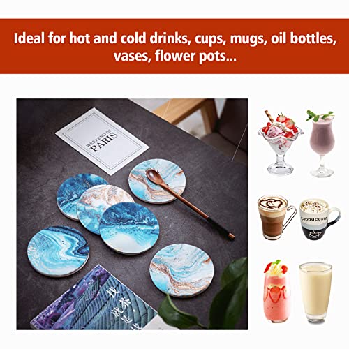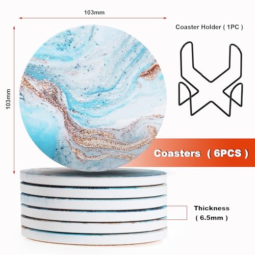 Sottobicchieri rotondi in ceramica con set di supporto, regalo caldo: vengono forniti con 6 sottobicchieri standard da 10,2 cm con supporto, adatti per la maggior parte delle tazze, bicchieri, tazze. Lo smalto opaco sulla superficie del sottobicchiere mantiene il motivo luminoso e non sbiadisce facilmente. Il design unico in marmo in stile mare aggiunge colore e vitalità alla tua casa e ufficio. Regalo ideale per amici e inaugurazione della casa.