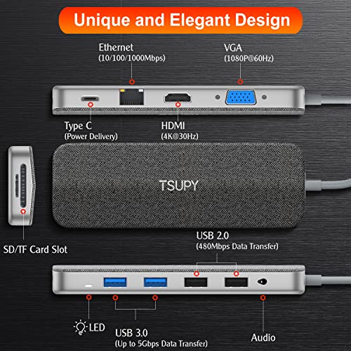TSUPY Hub USB C 11 in 1 Design del Tessuto Doppio Display Adattatore USB C HDMI 4K VGA 4 USB Ethernet PD 100W Lettore Schede SD Micro SD Jack 3.5 USB C Hub Docking Station USB C per MacBook PRO