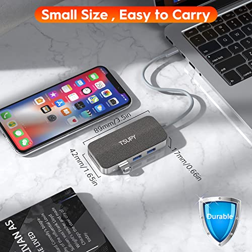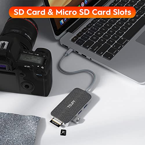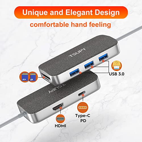 TSUPY USB C Hub Thunderbolt 3 7 in 1 tessuto + adattatore USB C in alluminio a HDMI 4K + 3 USB 3.0 + lettore di schede SD TF + USB C Power Delivery per dispositivi USB tipo C con DP ALT Mode