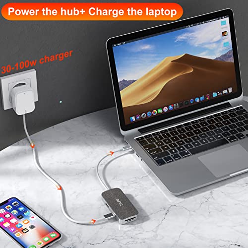 【 Più veloce e meno tempo 】 Non aspettare 3 USB 3.0 con 5 Gpbs e 2 lettori di schede, servono per collegare mouse, tastiera, ventole USB, altoparlante, chiavetta USB, flash USB, schede di memoria, ecc., per trasferire rapidamente i dati o ricaricare la batteria dal tuo cellulare, cuffie, braccialetto smart con le porte USB, tramite la porta USB C PD-Power Delivery è possibile ricaricare il tuo computer rapidamente. e caricare l'USB C Hub HDMI