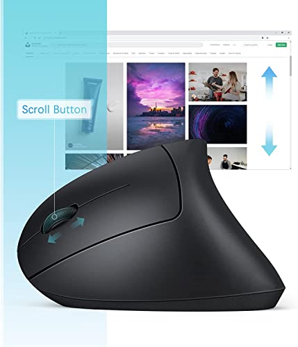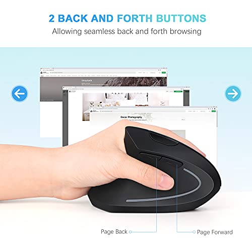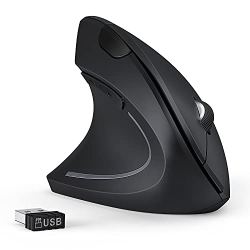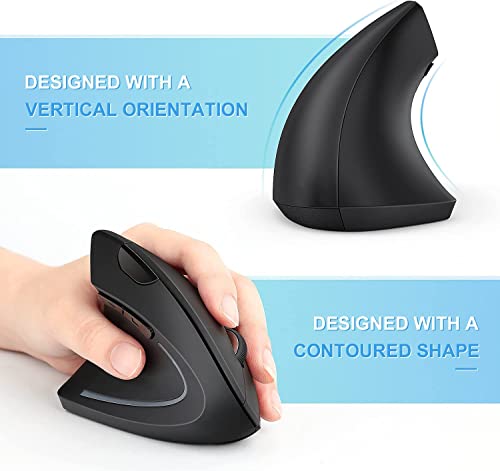 TSYMO Mouse Wireless Ergonomico per Mancini, Mouse Verticale Senza fili DPI 800/1200/1600 Regolabile con Ricevitore USB per Laptop, PC, Notebook