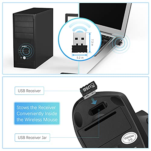 Connessione di più dispositivi: il mouse verticale ergonomico ha due modalità Bluetooth 5.0 e una connessione USB 2,4 G (ricevitore nano USB memorizzato nella parte inferiore del mouse). È possibile controllare facilmente tre dispositivi contemporaneamente e passare liberamente tra Windows, Android e Mac con un solo pulsante