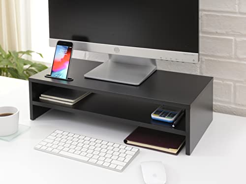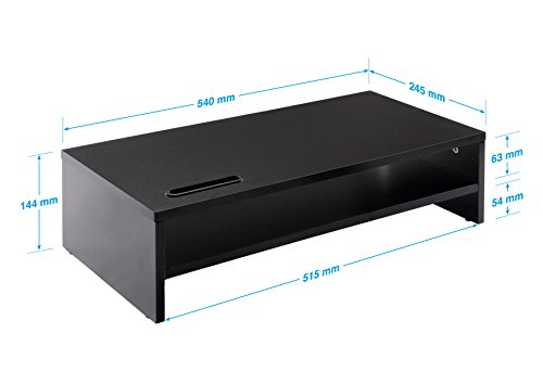 Ttap Supporto per monitor in legno nero a due ripiani, per computer portatile, TV, schermo da scrivania, 54 cm di lunghezza x 24,5 cm di profondità x 14,4 cm di altezza (con supporto per smartphone)