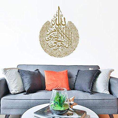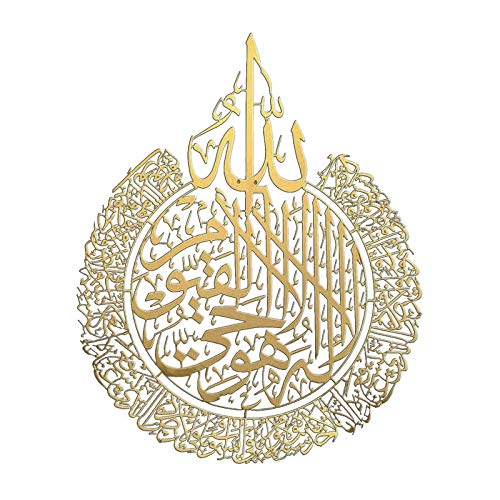 TTCPUYSA Islamico Wall Art Decor, Ayatul Kursi Xl Shiny Polished Metal Wall Decor, islamico Ramadan Wall Art Decor regalo per soggiorno camera da letto ufficio decorazione della parete (Oro)