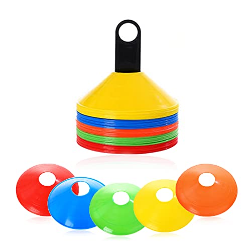 Set Coni per Allenamento di Calcio: set da 25 Coni da Allenamento con supporto per il trasporto. 5 diversi colori (rosso, giallo, blu, verde, arancione) per etichettare tutto facilmente. Rendili facili da individuare non solo sull'erba, ma anche quando ti alleni in diversi campi di allenamento.