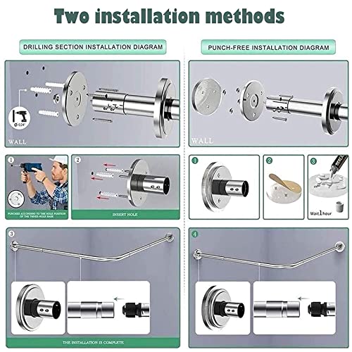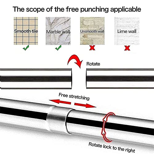 FORATURA/NESSUNA FORATURA: due metodi di installazione consentono di fissare saldamente l'asta della tenda della doccia alla parete con un adesivo solido. Puoi anche praticare dei fori nel muro e fissare la barra da bagno con le viti. (Più stabile, nessun cedimento nel mezzo)