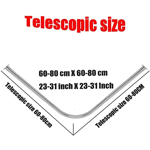 TTFFWW Regolabile Asta Tenda Doccia Angolare,Acciaio Inox Palo Telescopico Barra di Tensione,Bastone Tenda Doccia a Pressione Curvo,Senza Forare,per Bagno,Vasca da Bagno,Silver,70-95 * 70-95cm