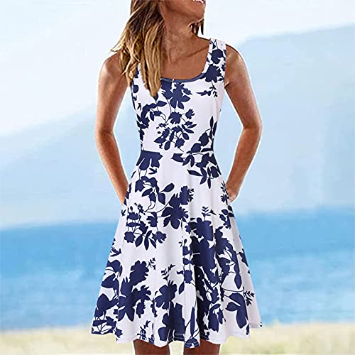 TTMall Abito Donna Estivo Elegante Curvy Abito Estivo da Donna Senza Maniche con Scollo a U a Trapezio Corto Casual Stampato Cotone Women Derss Summer Abito Autunnale (B, XXL)
