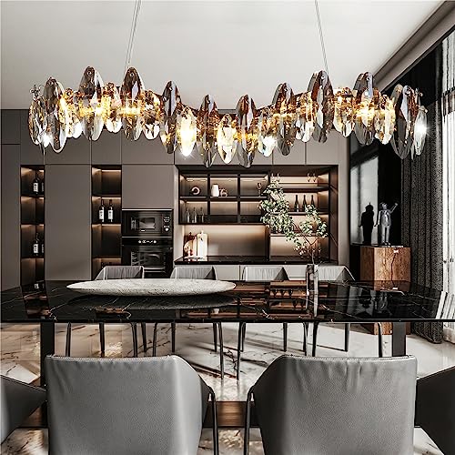 【Processo avanzato di galvanizzazione】La parte metallica del lampadario è fatta di ferro di alta qualità e adotta il processo avanzato di galvanizzazione, che è durevole e non facile da sbiadire. Perfettamente abbinata alle misteriose lame di cristallo grigio K9, la lampada è sobria e lussuosa.