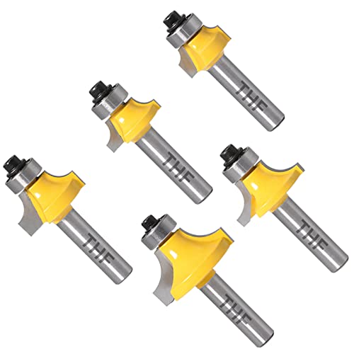 TToplife 5 pezzi 8 mm gambo rotondo tramite fresa punte fresa con cuscinetto a sfera, arrotondamento angoli forma per la lavorazione del legno 1/8", 3/16", 1/4", 5/16", 3/8"Radius