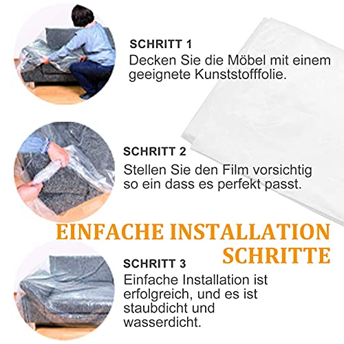 [2 COPRIDIVANO] - La pellicola trasparente per rivestimento viene utilizzata come protezione antipolvere, che può adattarsi perfettamente alla forma del divano con strisce adesive. La pellicola protettiva trasparente aiuta a trovare rapidamente il divano quando si sposta o si ripone.