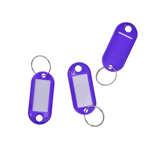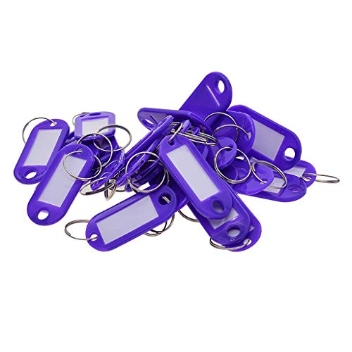 Questi portachiavi in plastica viola vengono forniti con un inserto bianco per scrivere. È possibile anche stampare i propri inserti o scattare foto.