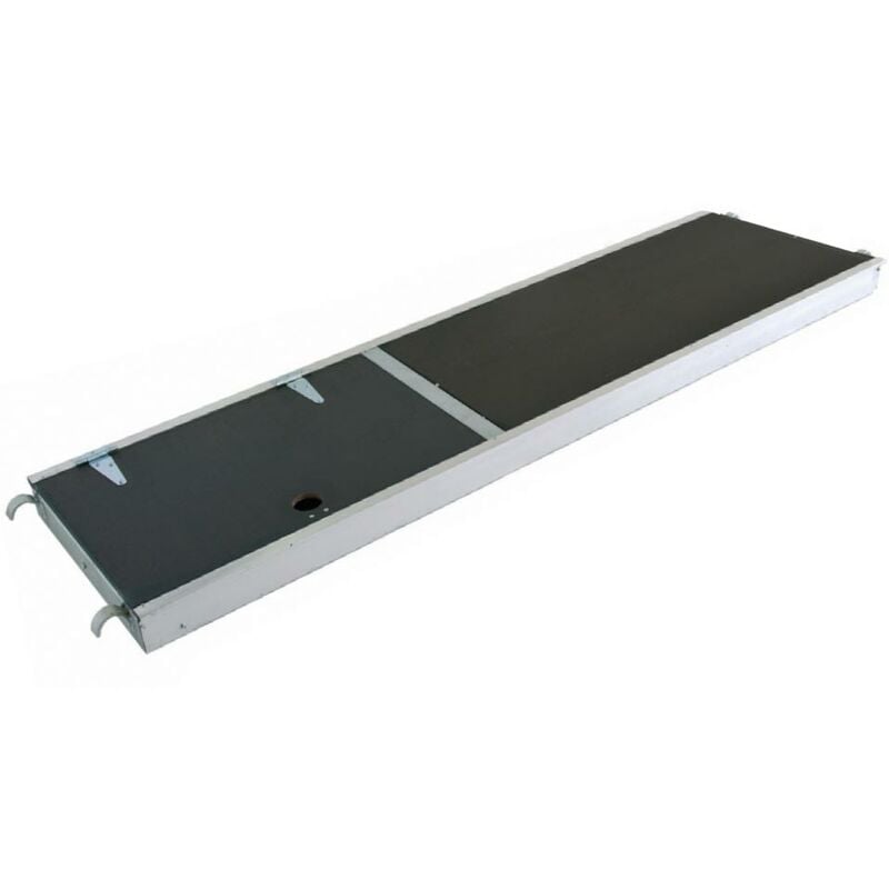 USO - Costruire un piano di lavoro per facilitare il movimento in altezza. - Facilitare la rinovazione di tetti e capannoni, facciate e coperti. - Per cantieri di lavoro, facciate di edifici, creazione di aperture e passaggi. - Cantieri per la costruzione di edifici, appartamenti o case individuali. PREGI DEL LEGNO - Il piano di calpestio in legno permette al creazione di una botola a sollevamento per i passaggio dell'operatore, al momento della salita e della discesa. - Sicura sui cantieri di lavoro edile: l'operatore accede al piano di lavoro dall'interno della scala. CARATTERISTICHE - Apertura ganci: 50mm. - Facilità d'accesso al ponteggio grazie alla botola del piano. - Carico ammissibile fino a300kg/m2 per appoggiare il materiale di lavoro in prossimità della zona d'intervento.