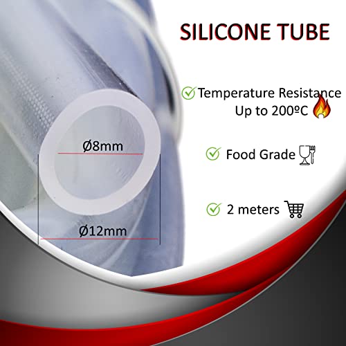 Tubi di gomma 12mm Dext x 8mm Dint, L(2M) tubo gomma trasparente/tubicino silicone/tubo silicone alta temperatura-60°C fino a 200°C FDA tubo per alimenti/tubo flessibile acquario/tubo pvc