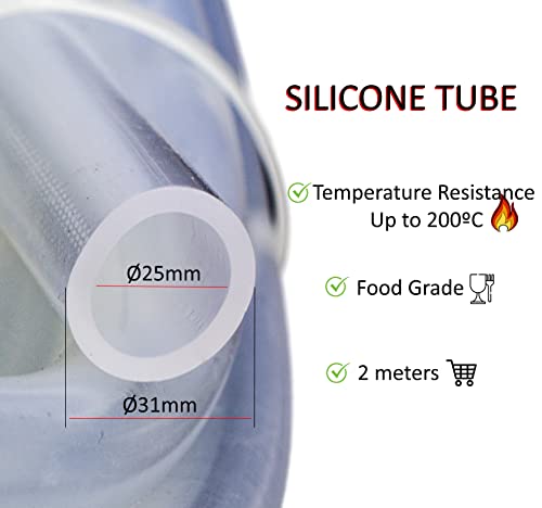 Tubi di gomma 31mm Dext x 25mm Dint, L(2M) tubo gomma trasparente/tubicino silicone/tubo silicone alta temperatura-60°C fino a 200°C FDA tubo per alimenti/tubo flessibile acquario/tubo pvc