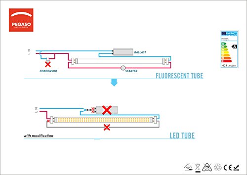 Montaggio semplice e veloce, rimuovendo il vecchio starter e senza nessuna ulteriore modifica alle tradizionali plafoniere;