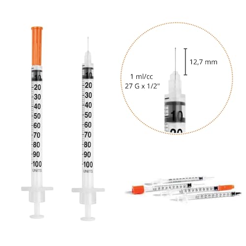 50 tubi di plastica da 1 ml/cc, 27 G (0,4 x 12,7 mm), strumenti di misura multiuso, confezionati singolarmente (27 G 1/2")