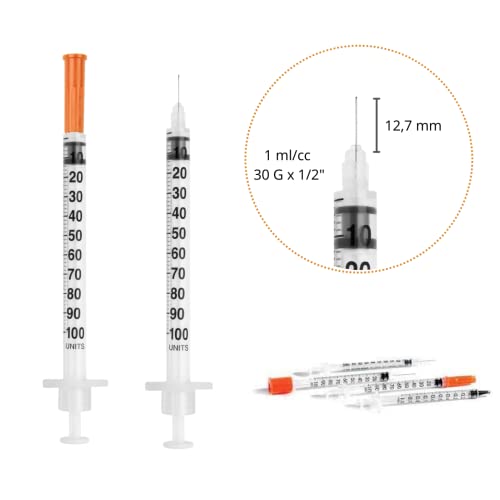 50 tubi di plastica da 1 ml/cc da 30 g (0,3 x 12,7 mm), strumenti di misura multiuso, confezionati singolarmente (30 G 1/2")