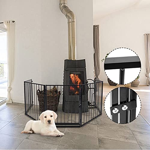Tubiaz Cancelletto Camino per Bambini di Sicurezza, 304 cm Cancello per cani da interno, 5 Pannelli (76 x 60 cm), Cancelletto in metallo, per camino o Scale, per bambini e cani domestici