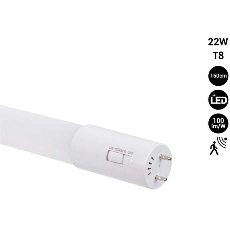 Il tubo LED T8 da 150 cm con sensore di movimento è un'opzione di illuminazione efficiente e versatile. Con una potenza di 22W e un'elevata efficienza di 100lm/W, emette una luce brillante ad un angolo di 300°, in bianco freddo (6000K). Incorpora un sensore di movimento a microonde con interruttore On/Off, che garantisce un notevole risparmio energetico. Adatto a spazi commerciali e residenziali, questo tubo LED offre durata e convenienza.