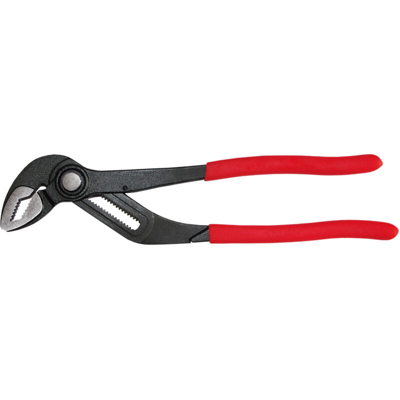 Le pinze a regolazione rapida sono progettate per lavori idraulici e meccanici. Consentono un lavoro veloce e preciso con poco sforzo. Il vantaggio principale dell'utensile è la funzione di bloccaggio, che protegge da spostamenti involontari e modifiche dell'ampiezza di apertura delle ganasce. L'utensile è realizzato in acciaio al cromo vanadio CrV forgiato a stampo, che garantisce la resistenza dell'acciaio alla corrosione, all'ossidazione, all'abrasione e la durata alle alte temperature. Caratteristiche: Lunghezza: 240 mm Distanza tra le mascelle: 0-50 mm (fino a 2 pollici). Guida a doppia dentatura - numero di denti - 24 (posizioni di regolazione). Materiale: acciaio CV al cromo vanadio forgiato. Testa: ulteriormente temprata ad induzione. Chiusura: Maniglia a molla: rivestita in materiale antiscivolo che consente una presa sicura e confortevole