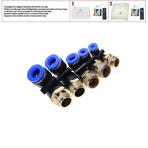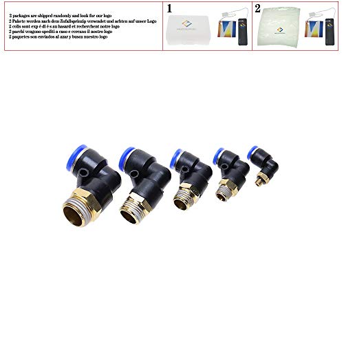PL tubo flessibile OD 4 6 8 10 12mm - M5 1/8''1/4 '' 3/8 '' 1/2 '' Connettore maschio a gomito pneumatico Tubo Spingi in aria Raccordo,Tubo con diametro esterno di 14 mm, 3/8 ''