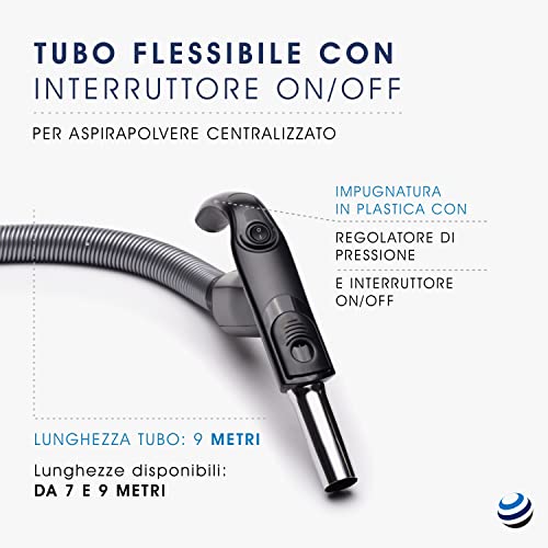 Tubo Flessibile da 9 Metri per Aspirapolvere Centralizzato - Compatibile con Aertecnica Tubò, Duovac, Disan e Sistem Air - Con Interruttore ON-OFF sull'Impugnatura