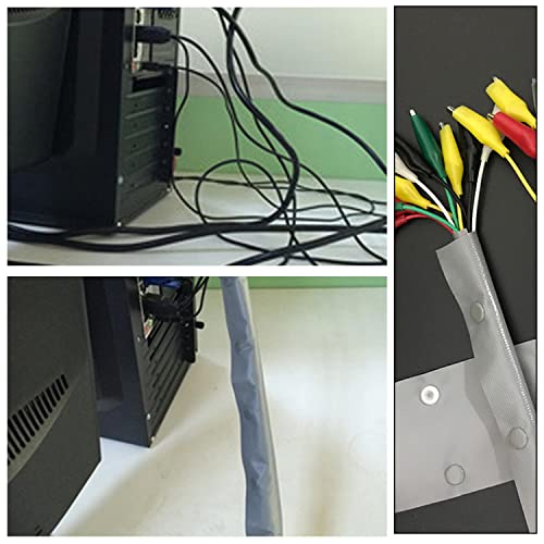 3 M Lungo Tubo di Gestione dei Cavi,MYLERCT Grigio Organizzatore di Fili, Organizzatore di Protezione del Filo con Fibbia a Scatto, Gestione dei Cavi per Apparecchiature Elettroniche
