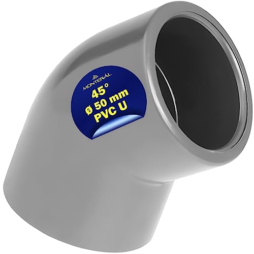 Tubo Gomito PVC U con angolo di 45° Ø 50 mm Incollaggio Adesivo di Due Tubi Garanzia di 10 Anni - MONTERAL