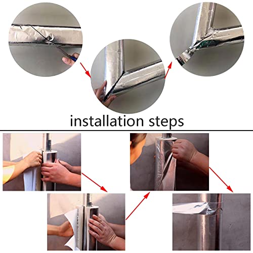 Durevole: materiale in foglio di alluminio superficiale, resistente agli strappi. Smusso scanalato per una facile installazione. Elevata elasticità, consistenza morbida, facile da piegare, antinvecchiamento, tubo in schiuma termoisolante può impedire che il tubo venga graffiato e danneggiato e ha un buon effetto anti-risonanza.