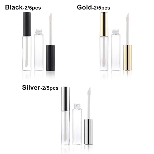 Tubo lucidalabbra con pennello contenitore portatile strumento per il trucco fai da te cosmetico mini bottiglia ricaricabile 2/5 pezzi (2 pezzi, argento)