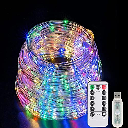 Tubo Luminoso a LED Alimentazione USB, 20M 200 LED Catena Luminosa Interni/Esterno con Telecomando 4 Colori Impermeabile per Illuminazione Natalizia, celebrazioni, Matrimoni