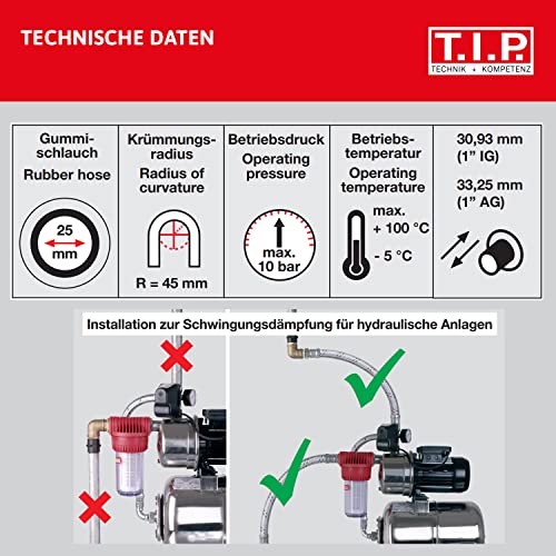 Tubo Panzer T.I.P. 30903 tubo flessibile 30,93 mm (1" IG)/33,25 mm (1 AG), 60 cm lunghezza del tubo