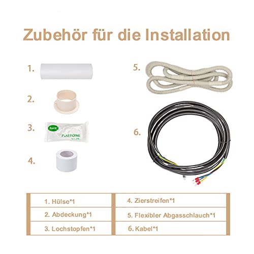 Un set di accessori: tubo di isolamento, 1 manicotto, 1 coperta, 1 tappo per fori, 1 nastro decorativo, 1 tubo flessibile di scarico, 1 cavo x 1 (4,5 m).