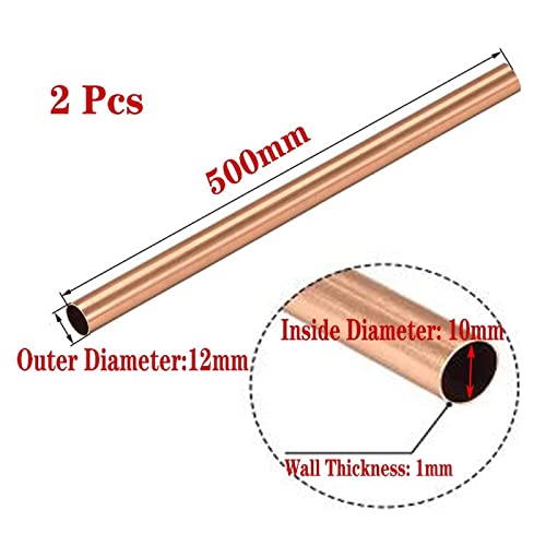 Tubo in rame metallico,tubo in rame ad alta purezza al99,9%,tubo in rame rame rosso T2 per apparecchiature di conduzione termica,spessore parete 1 mm,lunghezza 500 mm,Diametro esterno 12 mm * 2 pezzi