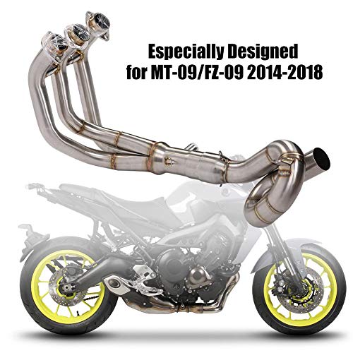 【ADATTO PER】 Il tubo di scarico della motocicletta può essere collegato con un tubo della marmitta da 51 mm e non si arrugginisce a causa dell'alta temperatura o della pioggia. Appositamente progettato per MT-09/FZ-09 2014-2018. Questa è la scelta migliore per migliorare le motociclette.