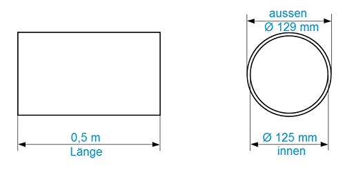 Tubo di ventilazione, diametro 125 mm, lunghezza 0,5 m, in plastica ABS, rotondo, tubo di scarico, canale, diametro 12,5 cm e 50 cm di lunghezza