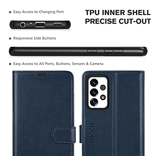 TUCCH Cover Galaxy A72 5G, Custodia Portafoglio Blocco RFID Supporto Cellulare Slot Porta Carte Pelle Sintetica TPU Protezione Magnetica Completa per Galaxy A72 (6,7 Pollici 2021), Blu