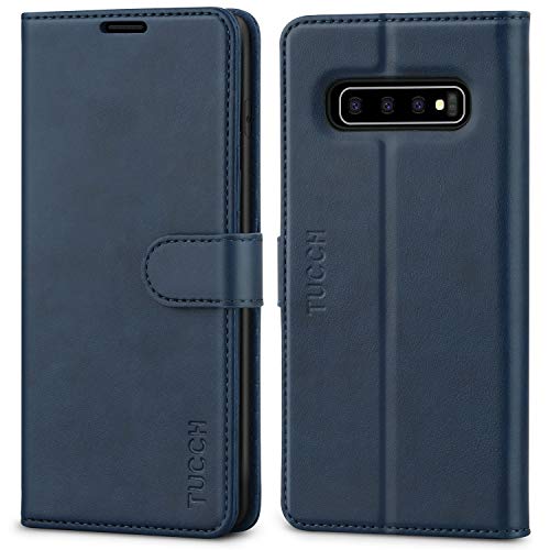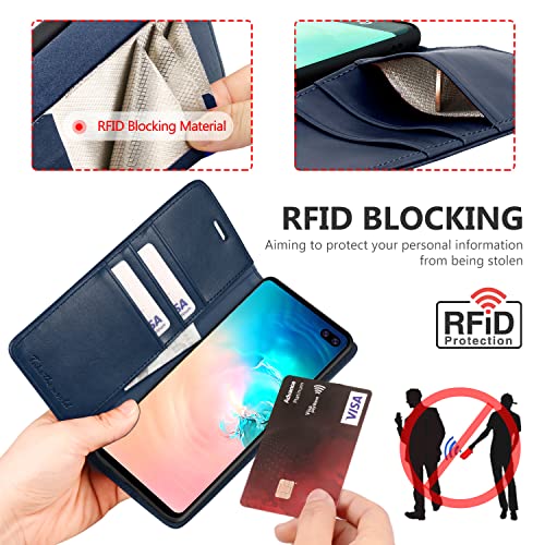 TUCCH Cover Galaxy S10 Plus, Custodia Blocco RFID Portafoglio Tasca Carte Antiurto Pelle Sintetica TPU Supporto Cellulare Magnetica Protezione Compatibile Galaxy S10 Plus (6,4 Pollici 2019), Blu Scuro