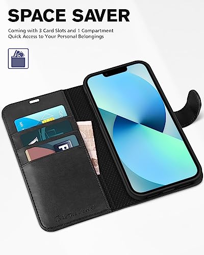 TUCCH Cover per iPhone 13 Mini 5G Resistente Pelle Sintetica Custodia Magnetica Flip con Chiusura Portafoglio RFID Blocco Tasca Carte Portacellulare Compatibile iPhone 13 Mini (5,4" 2021), Nero