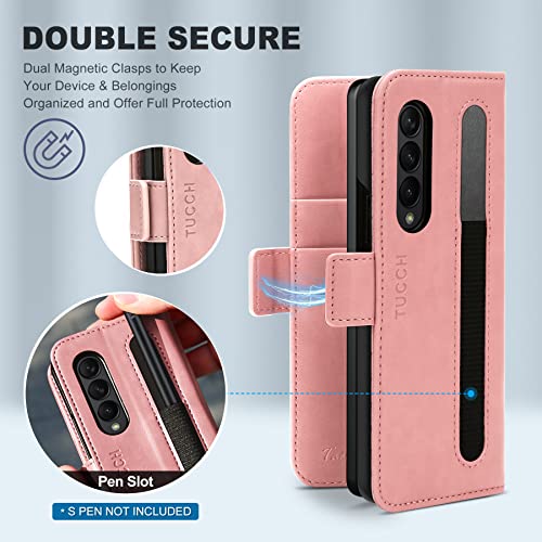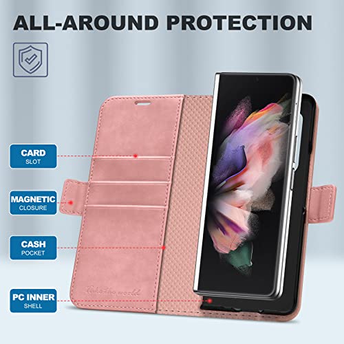 TUCCH Cover in Pelle Galaxy Z Fold3 5G Custodia Antiurto Portafoglio Tasca per Carte Blocco RFID Supporto Slot per S pen Chiusura Magnetica Protezione Compatibile con Galaxy Z Fold 3, Oro Rosa
