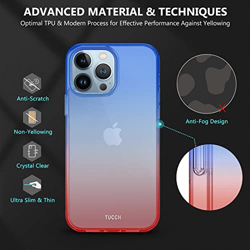 TUCCH Cover Trasparente per iPhone 13 Pro Max 5G Custodia Rigida Chiara Vetro Antiurto Anti-Graffio Proteggi Schermo Ricarica Wireless Compatibile iPhone 13 Pro Max (6,7 Pollici 2021), Blu con Rosso