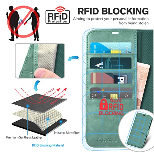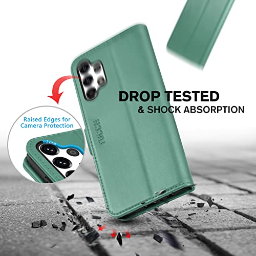 TUCCH Custodia Galaxy A32 5G, Cover Galaxy M32 Blocco RFID Slot Carte Portafoglio Pelle Sintetica con TPU Magnetica Supporto Cellulare per Galaxy A32/M32 5G (6,5 pollici), Verde Mirto